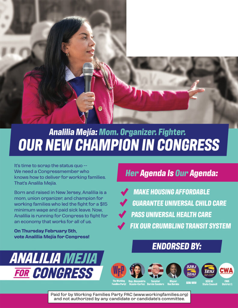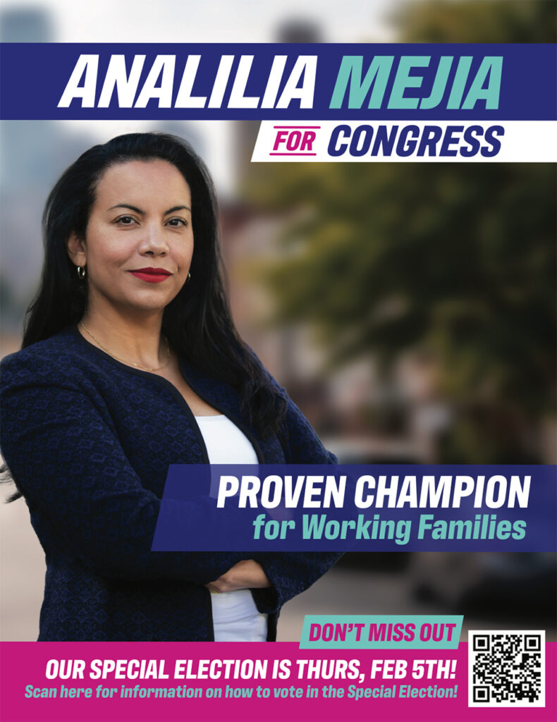 Working Families Party PAC has launched a cable, digital, and mail effort to elect proven working class champion Analilia Mejia.